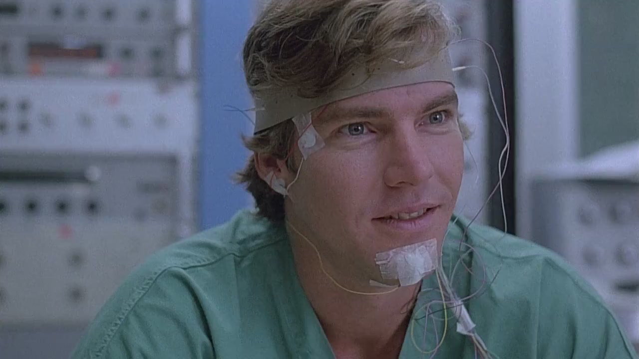 Parece-me claro que Cristopher Nolan deve ter assistido a este A Morte nos Sonhos em algum momento da vida, afinal a essência deste filme guarda muitas semelhanças com A Origem. Tudo gira em torno da possibilidade de entrar no sonho de alguém e interagir de maneira significativa, ajudando ou atrapalhando. Como anuncia o título brasileiro, aqui você pode morrer em seus sonhos. É uma ideia interessante, que garante momentos bem divertidos quando acompanhamos o personagem de Dennis Quad adentrando em sonhos alheios. Claro que os efeitos especiais são datados, mas o humor presente em uma boa quantidade de cenas diverte até hoje. Além desse lado divertido, o filme tem um ar de thriller, já que presenciamos uma verdadeira conspiração para eliminar o presidente dos Estados Unidos. A Morte nos Sonhos se sustenta bem explorando o lado sci-fi, o humor e a ação, simplesmente não há como se entendiar, mas o desfecho acaba decepcionando pela falta de inspiração e pela aparente pressa.