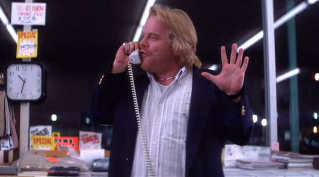 Não dá para negar que Embriagado de Amor é no mínimo diferente, a começar pelo esquisito personagem principal, Barry Egan (Adam Sandler). Barry cresceu com 7 irmãs, quase sempre sendo alvo de bullying e na vida adulta tornou-se alguém que fica extremamente desconfortável em público ou em qualquer tipo de situação que lhe cause ansiedade. De uma hora para outra ele é capaz de estourar e sair quebrando tudo pela frente, em acessos de fúria épicos.